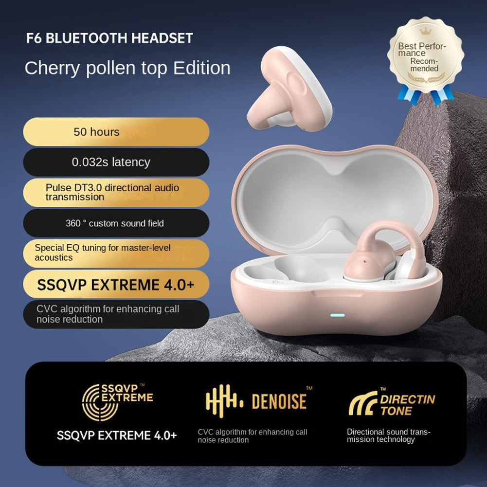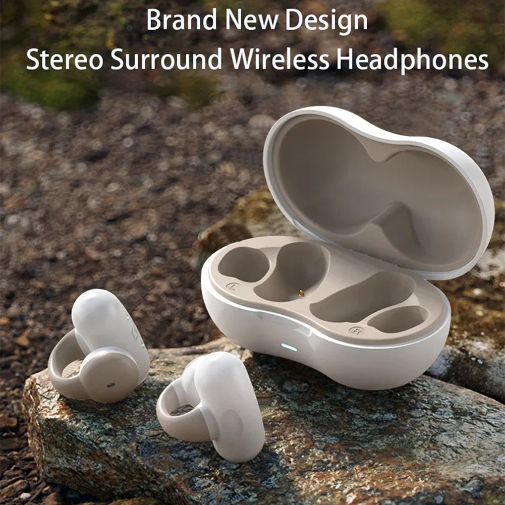Bone Conduction Bluetooth 5.3 Headphones Ear Clip-On Wireless Sports Earphone Noise Reduction Headset Pink White